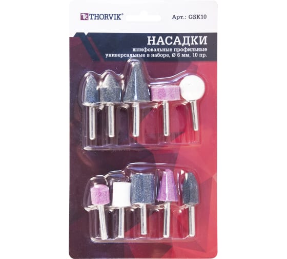 Набор шлифовальных насадок 10 предметов универсальные профильные 6мм Thorvik