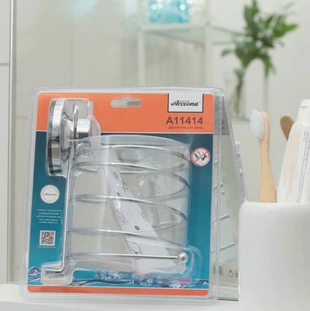 Держатель для фена на присоске Accoona A11414 — это отличный выбор для тех, кто ценит удобство, стиль и практичность в организации пространства!