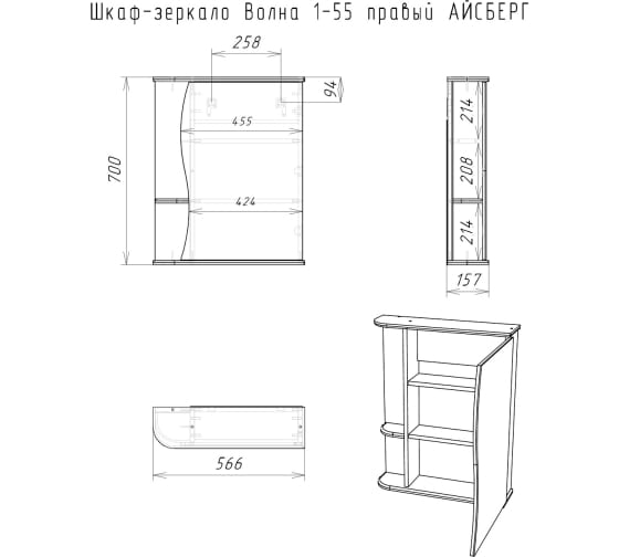 Зеркало-шкаф Волна 1-55, правый АЙСБЕРГ