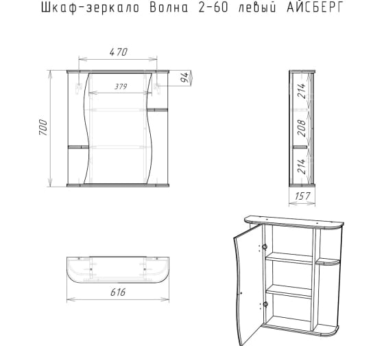 Зеркало-шкаф Волна 2-60 левый АЙСБЕРГ