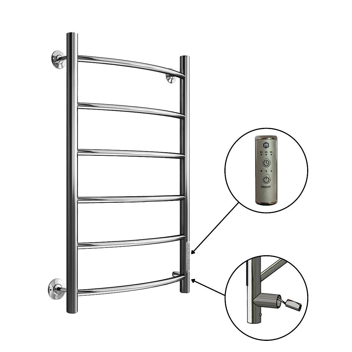Полотенцесушитель В4 Р80*50 (СНШ, 6 вставок, Под скрытый монтаж, С таймером; Правое подкл)