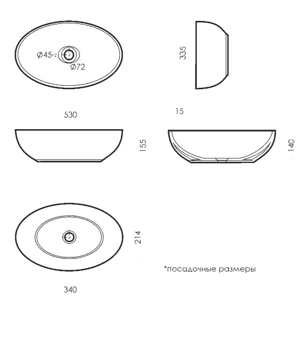 Умывальник накладной Ringo 53 Черный S1 Sanita Luxe
