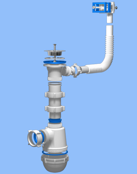 A0140 Сифон Ани Грот 1 1/2"*40 с переливом мойкиГабаритные размеры без перелива 304*138*86