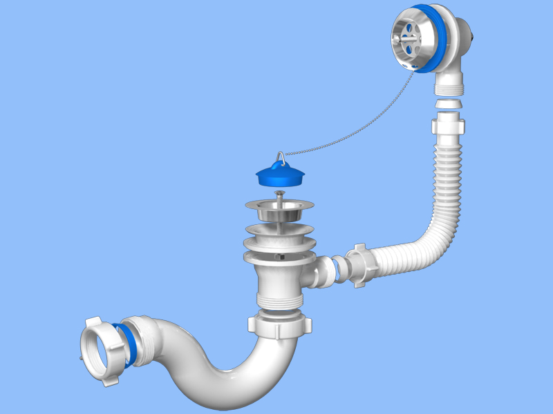 E150 Сифон Ани для ванны с выпуском и переливом 1 1/2"Габаритные размеры без перелива 250*140*74