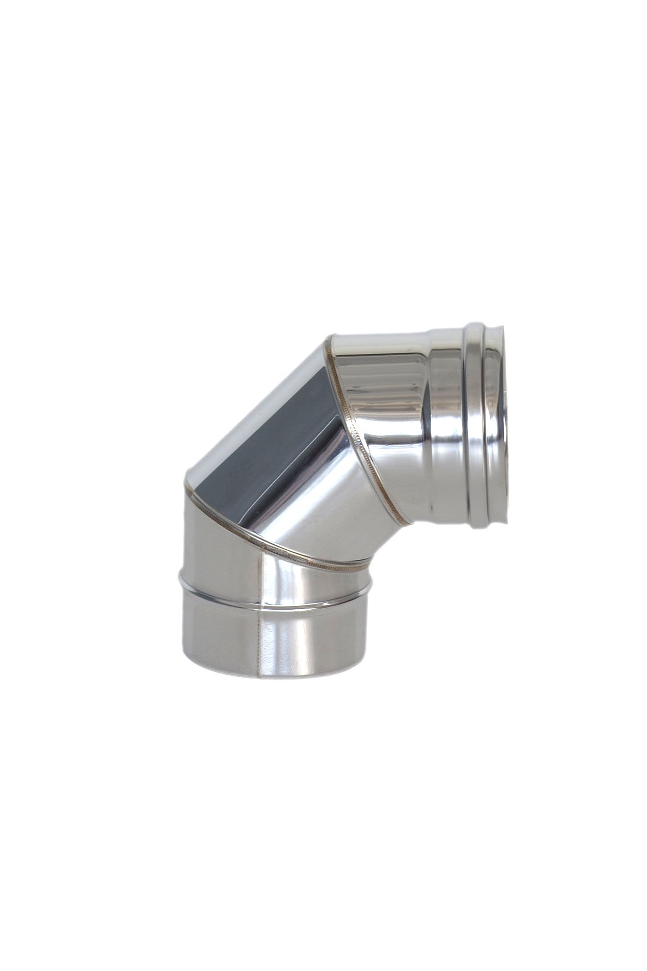 Отводы изготавливаются из цилиндрических секций, соединенных шовной сваркой.Это необходимо для увеличения, согласно нормативам, радиуса поворота дымохода до значения диаметра дымовой трубы.