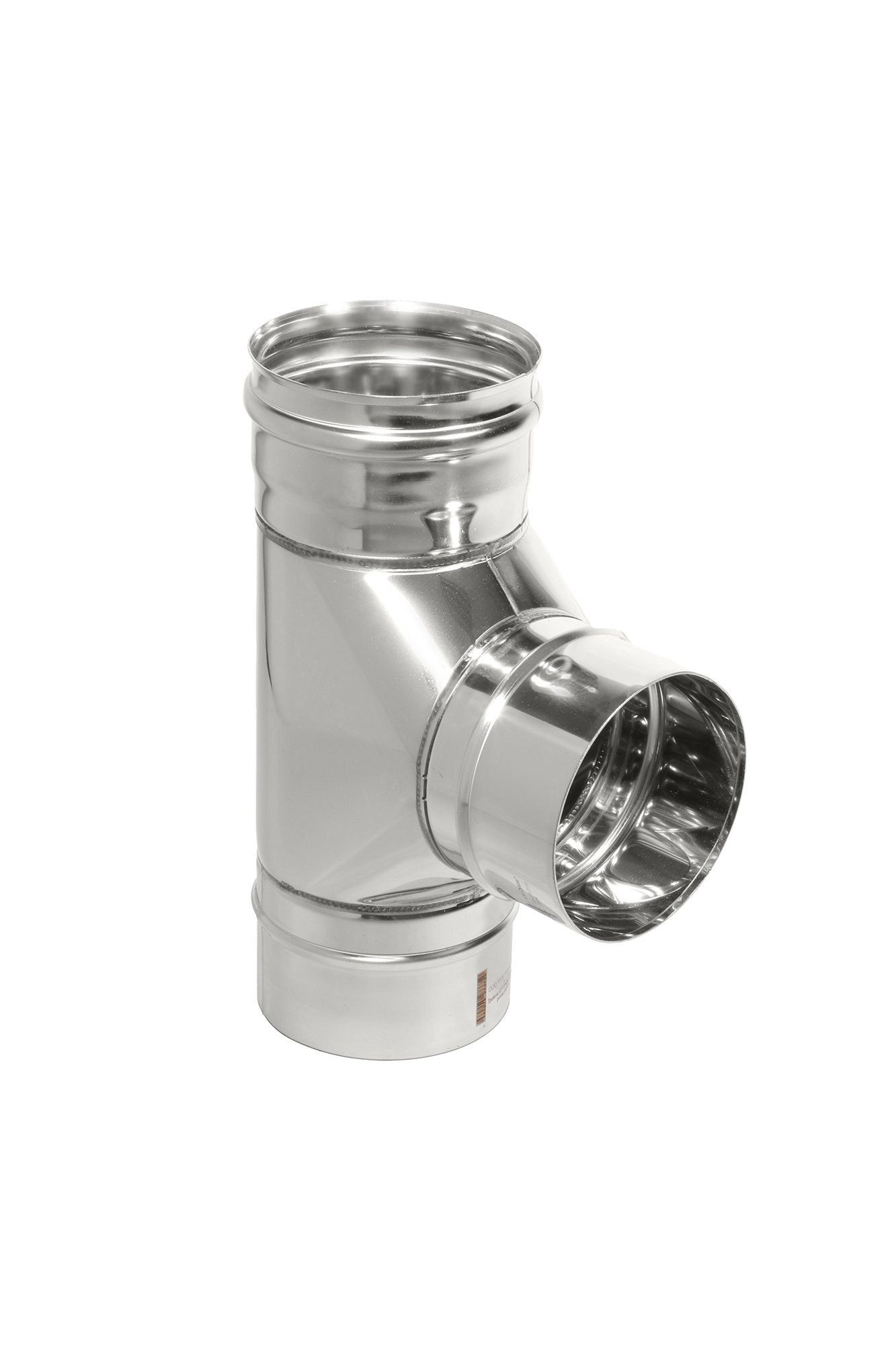 Состоят из двух элементов одинакового диаметра, соединённых методом точечной и шовной сварки под углом 90°. В нижней части тройников могут устанавливаться заглушки или конденсатоотводы.Преимущества дымоходов «Евро ТиС»: