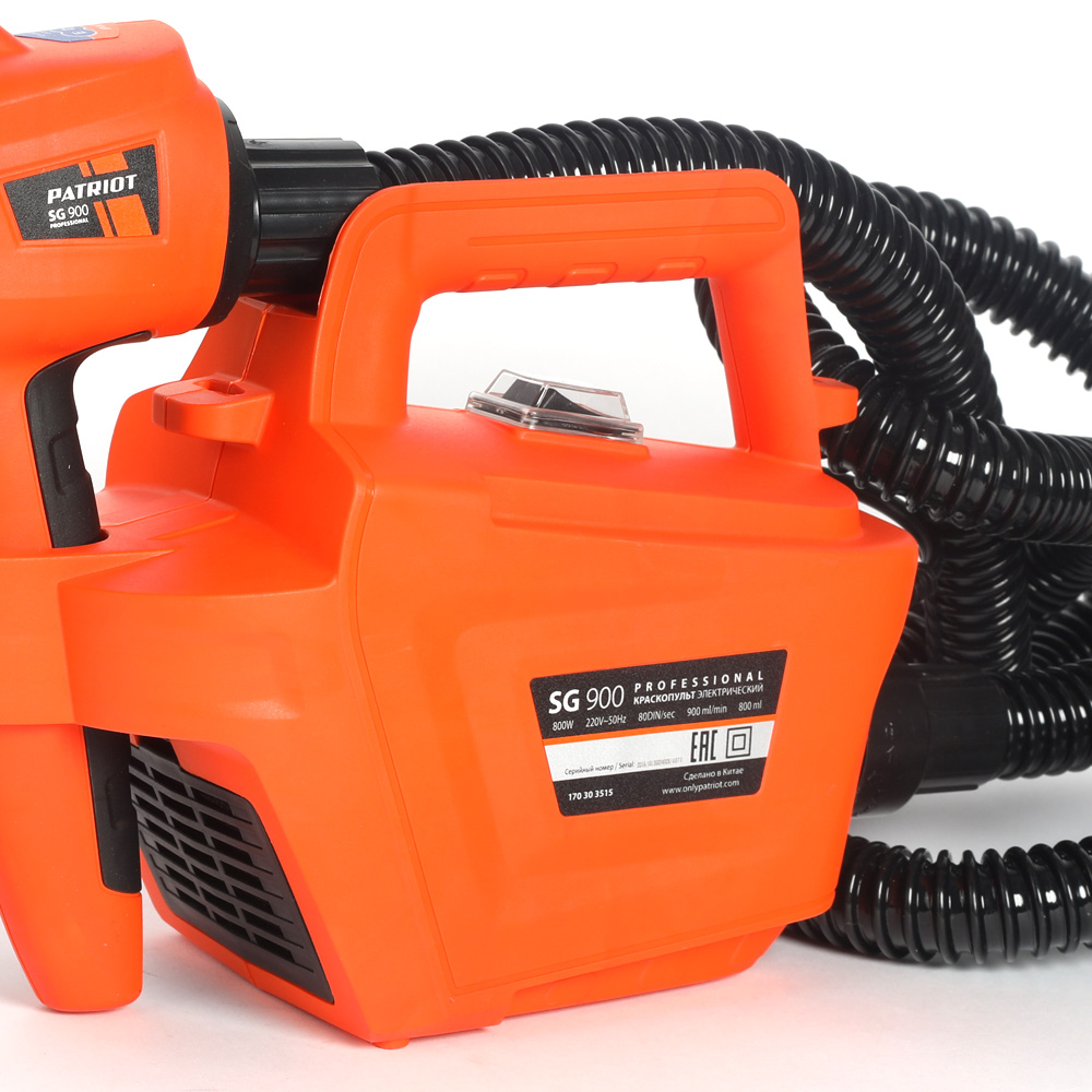 Краскопульт электрический PATRIOT SG 900 HVLP (900 Вт., 90 DIN/сек, Расход 800 мл/мин. Резервуар: 700 мл)