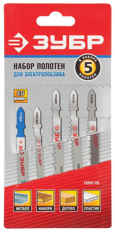 Набор пилок по дереву и металлу для электролобзика 5 шт с EU-хвостовиком ЗУБР "ПРОФИ"