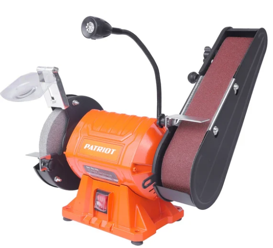 Станок заточной PATRIOT Expert GM 150 PBL, подсветка, 375Вт, 2980об/мин, 150мм диск, 36/80 зерн, шлифлента 50x686мм, посадочный 12.7мм, асинхронный, адаптер на круги 32 мм