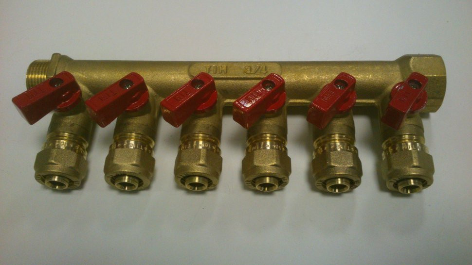 Коллектор с шар. кр. 6 вых. 3/4 х 16 ц (с красными ручками) TIM