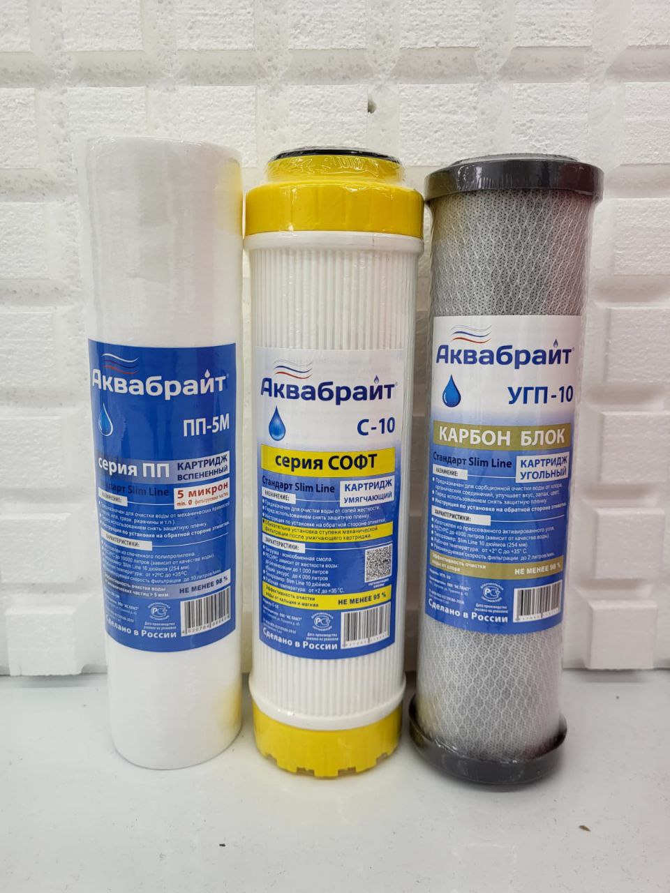 Комплект картриджей К-2 Умягчение для Триа 3 ступени (ПП-5М, УГП-10, С-10) Аквабрайт