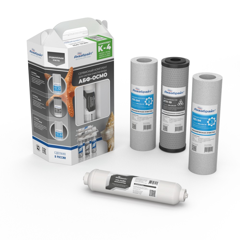 Комплект картриджей К-4 без мембраны для Осмо 5 (ПП-5М, УГП-10, ПП-1, УГА-ЛАЙН) Аквабрайт