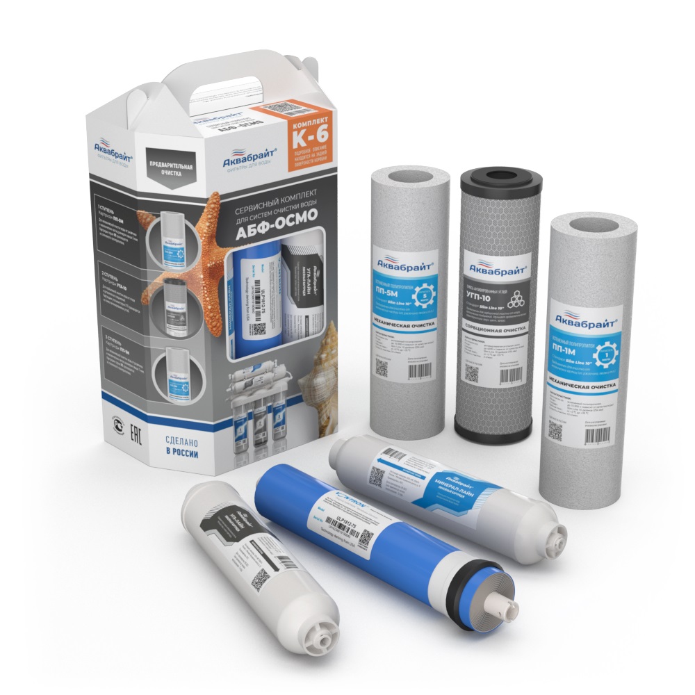 Комплект картриджей К-6 для Осмо 6 (ПП-5М, УГП-10, ПП-1, VONTRON-75, УГА-ЛАЙН, УГА-МИН) Аквабрайт?? Комплект картриджей К-6 от компании Аквабрайт — это высококачественное решение для систем обратного осмоса, предназначенное для обеспечения чистоты и безопасности питьевой воды. Включая все необходимые фильтрующие элементы, данный комплект эффективно удаляет загрязнения и вредные вещества, гарантируя вам чистую и безопасную воду в вашем доме или офисе.