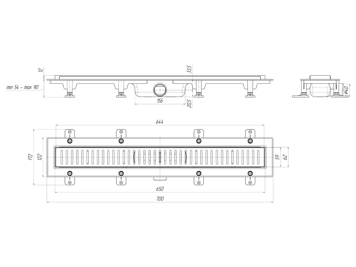 Трап-лоток 40*62*650. комбинированный затвор, пластик, решетка нержавейка глянец "Бимс" TL1465G Ани