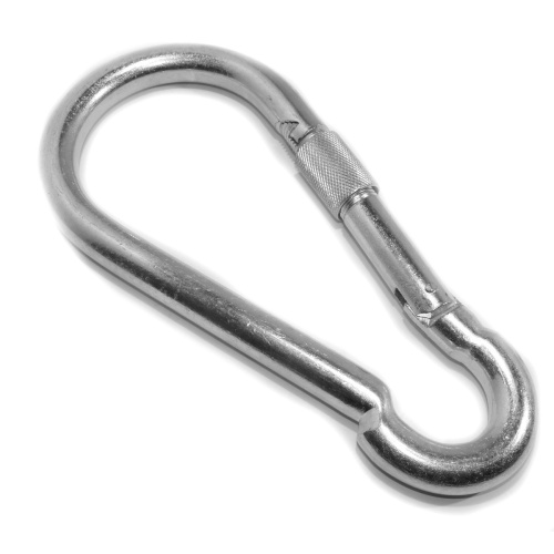Пожарный карабин с фиксирующей гайкой DIN 5299D применяется в качестве разъемного соединения цепей, веревок и канатов. Винтовая муфта с пружинной защелкой накрепко запирает карабин, исключая его случайное раскрытие. Классическая грушевидная форма позволяет одновременно цеплять несколько веревок или цепей.Наличие