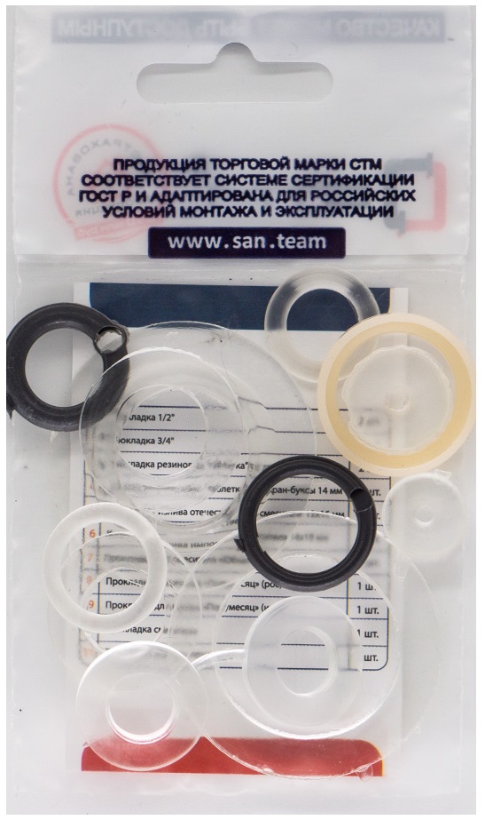 Набор сантехнических прокладок для смесителя "Сантехник" №2 силикон