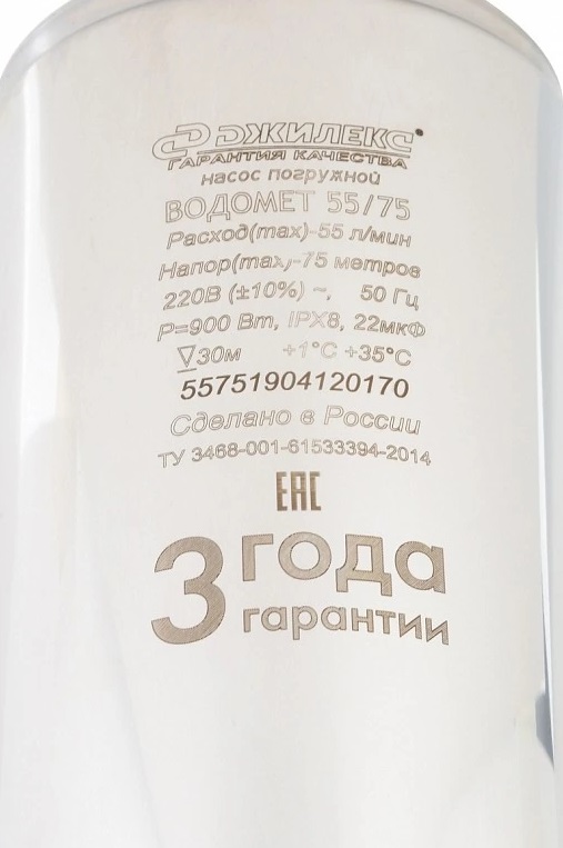 Насос погружной центробежный колодезный ВОДОМЕТ ПРОФ 55/75 (98 мм, 220В, 900Вт, 55 л/мин, 75м) кабель 30 м. ДЖИЛЕКС