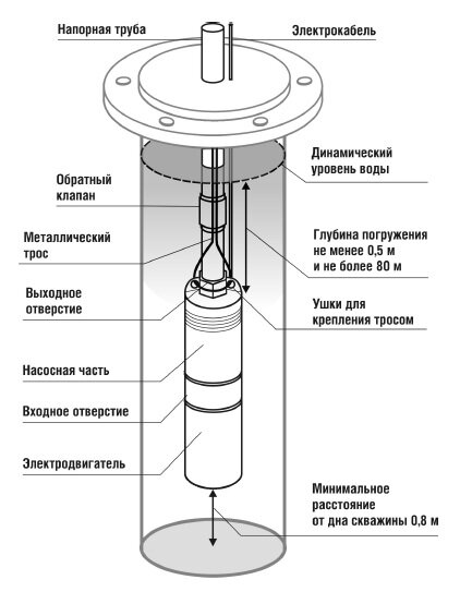 ? Корпус скважинного насоса выполнен из нержавеющей стали, что обеспечивает долговечность и надежность работы устройства.