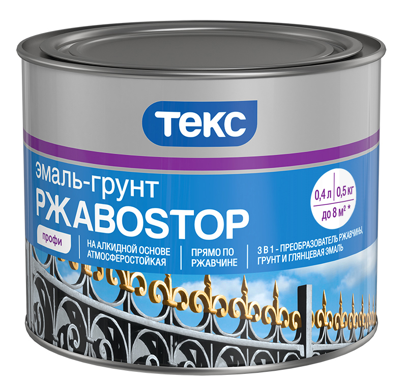 Предназначен для окраски металлических поверхностей с остатками ржавчины внутри и снаружи помещений (гаражи, ограды, решетки); для окраски деревянных поверхностей. Позволяет проводить окраску металлических поверхностей без дополнительного использования грунтовки и преобразователя ржавчины. Обеспечивает высокие защитные свойства как на ржавой поверхности, так и на чистом металле. Может наноситься на остатки старых ЛКМ.Наличие