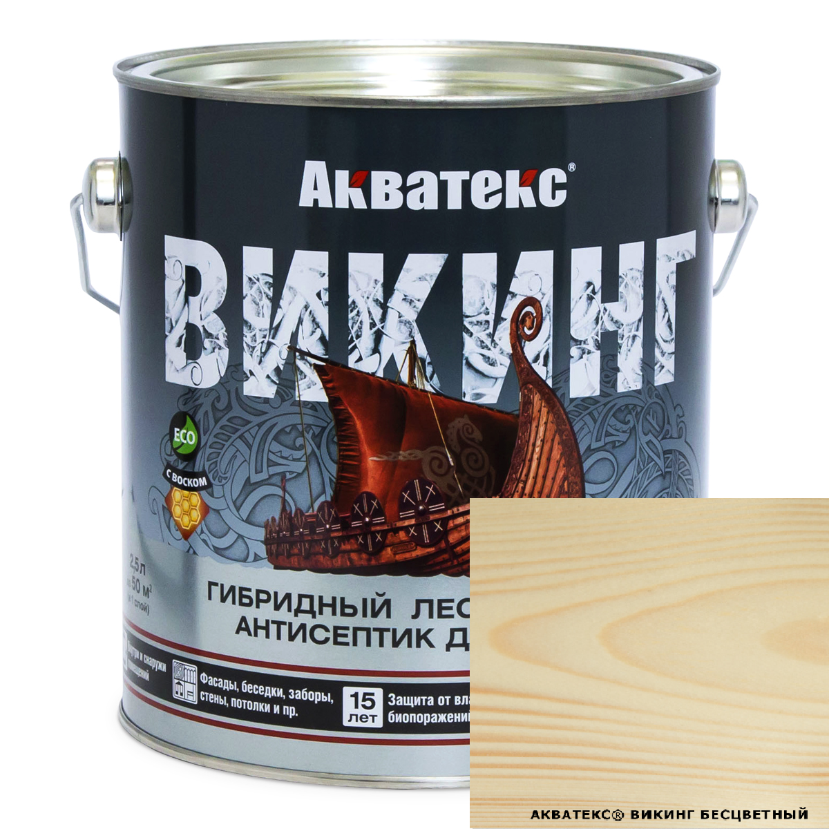Пропитка по дереву Антисептик АКВАТЕКС Викинг бесцветный 2,5л (Рогнеда)