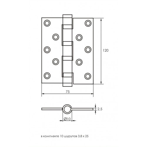 Петля 5" 120х70х2,5мм прямая, сталь, хром SOLLER