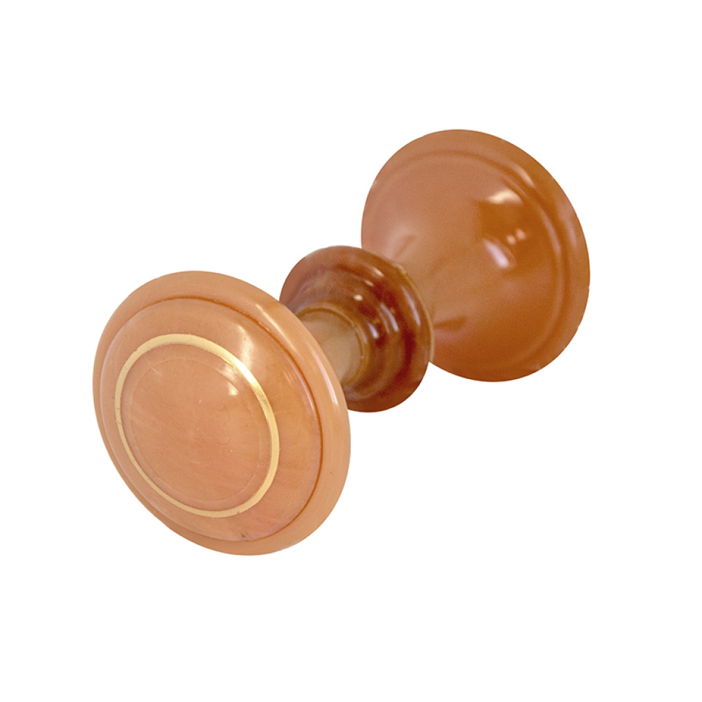 Ручка-кнопка дверная. Материал - пластик. В комплекте соединительный штырь-винт длиной 100 мм. В центре ручки окантовка в виде золотого кольца.Характеристики