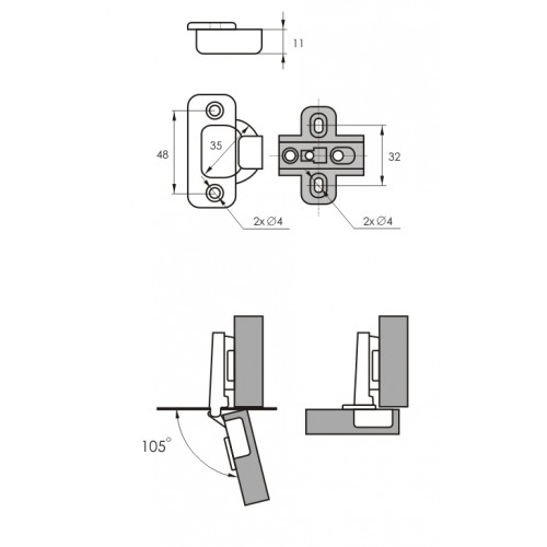 Металлический механизм, позволяющий закрывать и открывать мебельные фасады. Конструкция состоит из чаши, плеча и планки.Наличие
