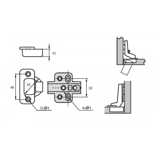 Металлический механизм, позволяющий закрывать и открывать мебельные фасады. Конструкция состоит из чаши, плеча и планки.Наличие