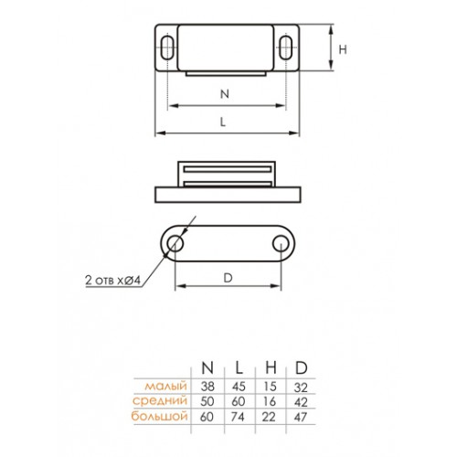Магнит мебельный 60-15мм коричневый SOLLER