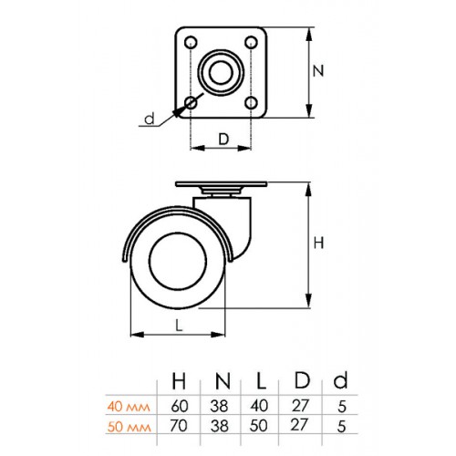 Опора колесная 50мм резиновый ход 4619