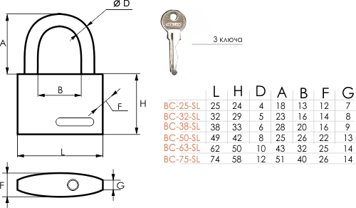Замок навесной ВС-63-SL (63мм) SOLLER