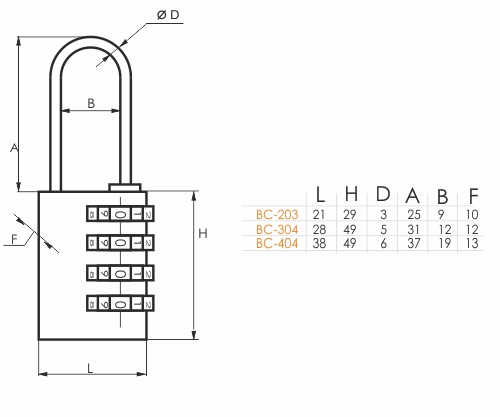Замок навесной с кодированием латунь ВС304 китайской компании "Soller" для различного применения. Изделие изготовлено из латуни с полимерным покрытием для защиты от попадания воды. Закалённая дужка устойчива к взломам. Механизм секретности - кодовый. В конструкции не предусмотрено запирание без ключа. Особенности: Габаритные размеры замка без дужки - 80х27.7 мм. Диаметр дужки - 5 мм. Поставляется товар в индивидуальном блистере.Наличие