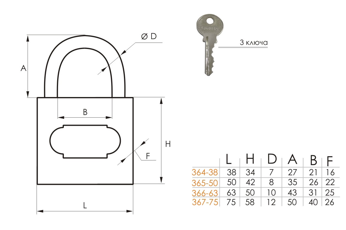 Замок навесной 367-75HG глянцевый SOLLER