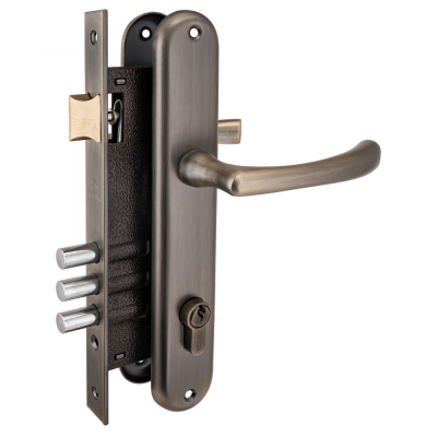 Замок врезной с ключом и ручкой 0221 MAB мат. бронза АЛЛЮР