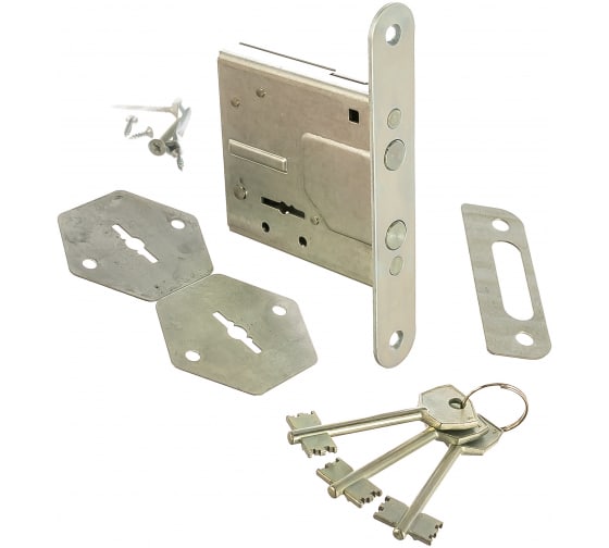 Замок врезной 4х сувальдный. Предназначен для установки в деревянные двери. Два цилиндрических ригеля диаметром 11мм, вылет 21мм. Удаление ключевого отверстия 51мм. Стальной оцинкованный корпус. Ширина торцевой планки 22мм. Заявленная секретность 100 кодовых комбинаций. 3 ключа.Наличие