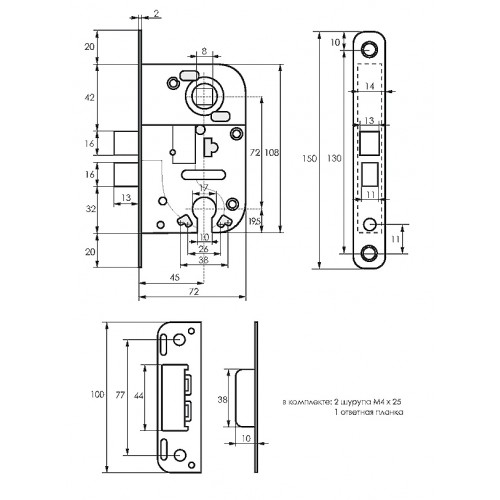 Замок предназначен для межкомнатных дверей. Плавное и бесшумное закрывание обеспечивается благодаря пластиковому язычку- защелке. Для работы замка используется ручка и механизм цилиндровый под ключ.Наличие