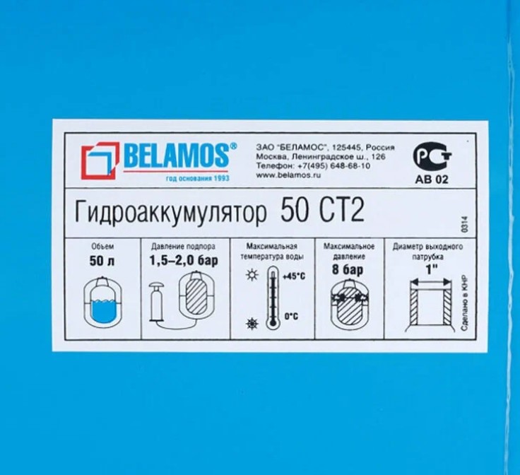 Бак гидропневмобак 50л. синий горизонтальный d 1", 8 bar BELAMOS