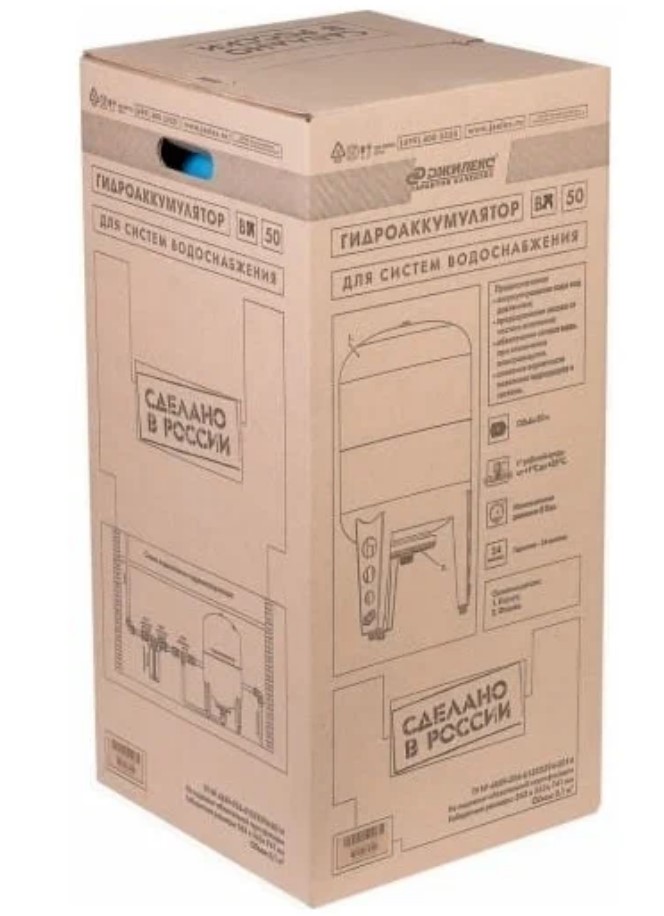 ? В комплект поставки входит: гидропневматический бак объемом 50 л; инструкция по монтажу и эксплуатации.