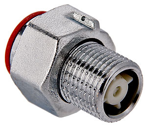 Полусгон с накидной гайкой и обратным клапаном(VTr.612.N) Латунный никелированный фитинг со встроенным обратным клапаном. Основное назначение – подключение водосчетчиков. Обеспечивает наличие прямых участков длиной в три условных диаметра до и после расходомера, необходимых для его точной работы. Накидная гайка имеет отверстие для пломбировки. Резьба со стороны без гайки: наружная, трубная цилиндрическая по ГОСТу 6357 (ISO 228, EN 10226). Присоединительный размер 1/2".