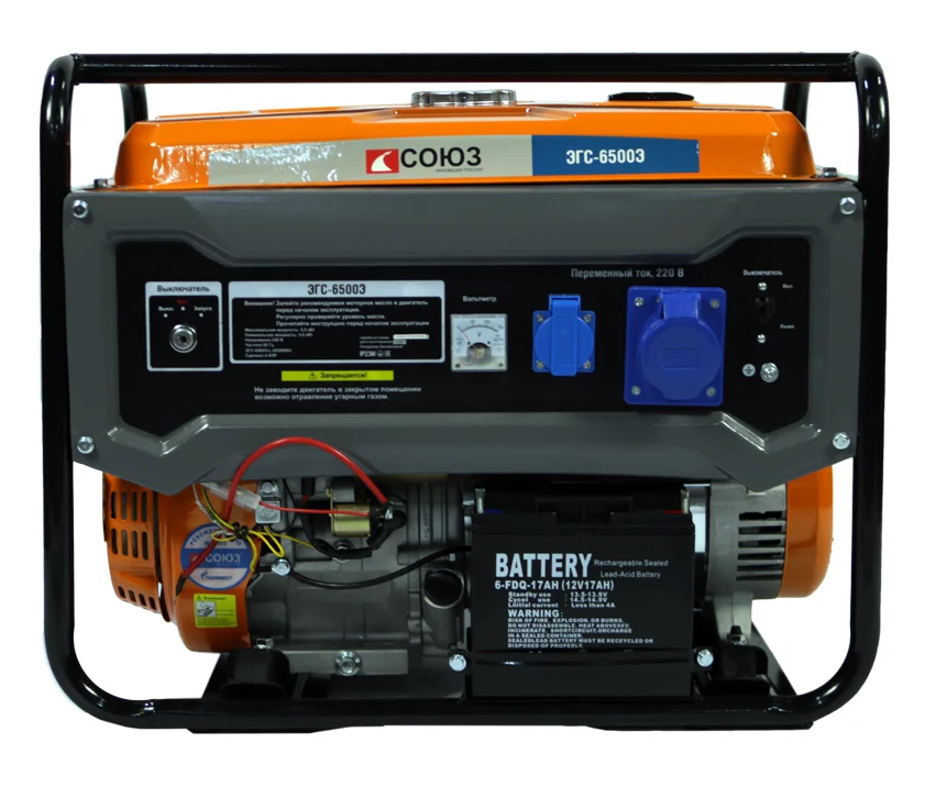 Бензогенератор ЭГС-6500Э (5,5кВт, эл/ручн старт, АКБ, 70,3кг) СОЮЗ
