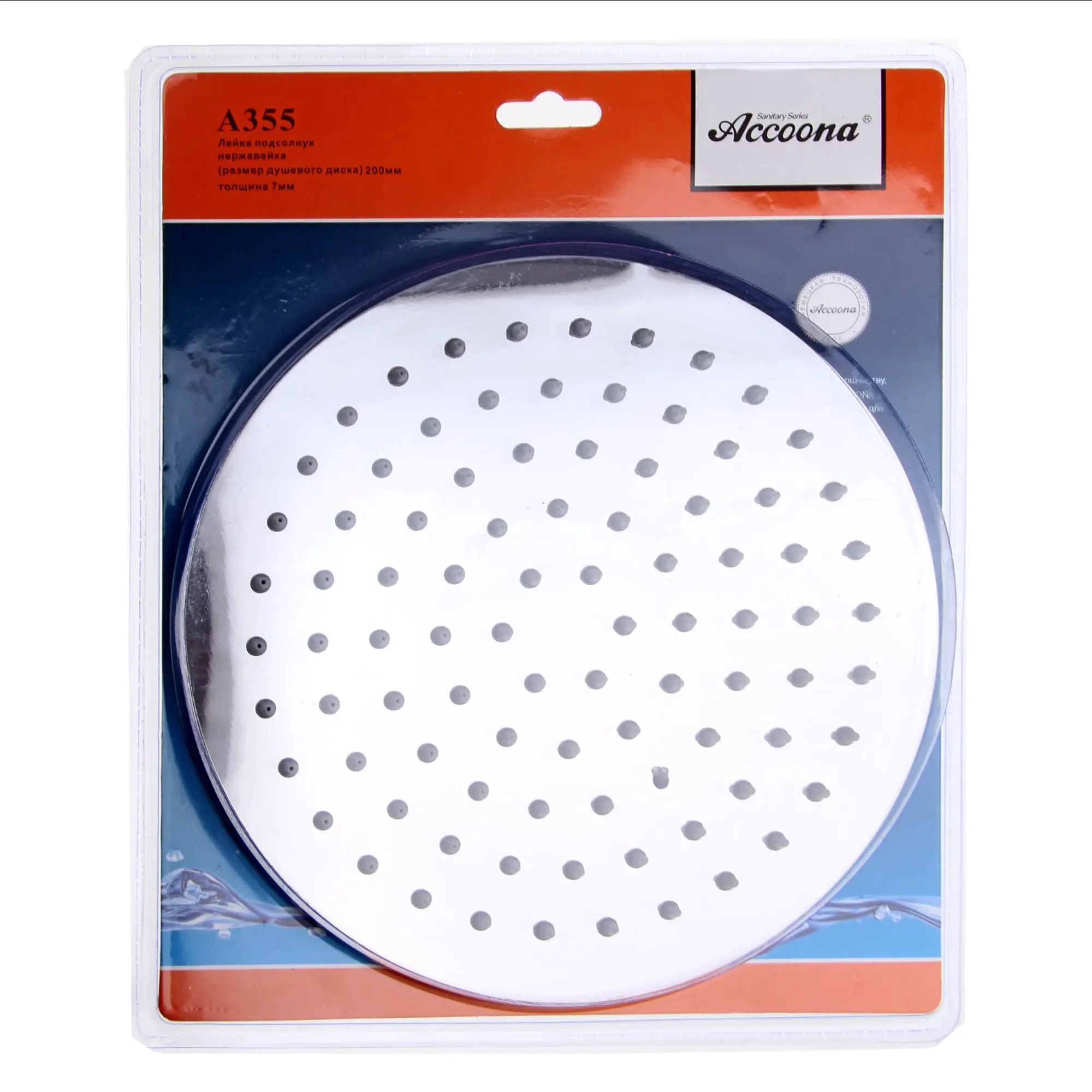 Лейка для душа тропическая круг d 20 см Нержавеющая сталь Хром А355 Accoona