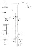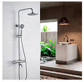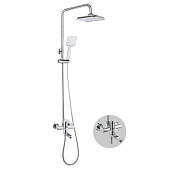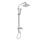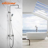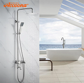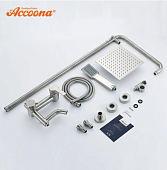 Душевая система с двухрычажным смесителем, тропическим душем и лейкой+стойка Силумин Accoona A8176-1