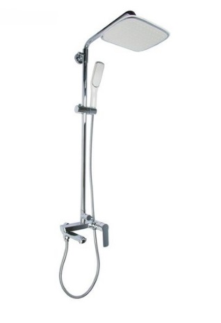 Душевая система с тропическим душем, латунный корпус, комплект, состоящий из ручной лейки со шлангом и держателя для нее, верхнего душа и штанги трубы.Штанга устанавливается параллельно стене с помощью металлических или пластиковых распорников и уже к ней крепятся все остальные элементы.