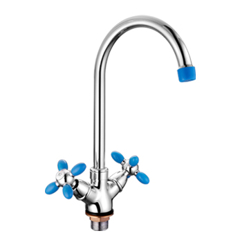 Смеситель кухня на гайке крест Силумин Синий+Хром Accoona A4582M