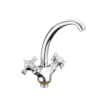 Смеситель кухня на гайке крест толстый гусак Силумин Хром Accoona A4070
