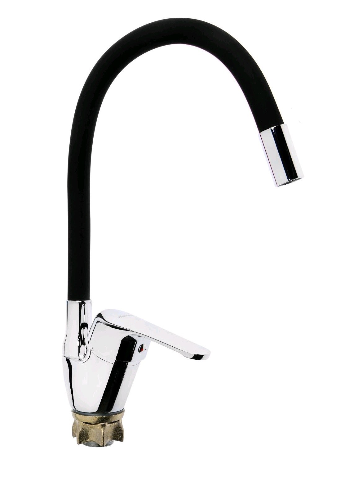 Смеситель кухня с силиконовым изливом, Силумин(Чёрный+хром) A4844F