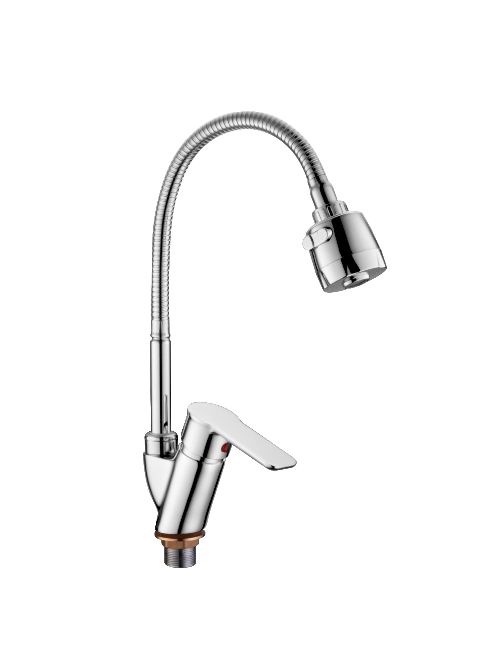 Смеситель кухня боковая ручка гибкий излив двухрежимный на гайке (35) Силумин Accoona A4864