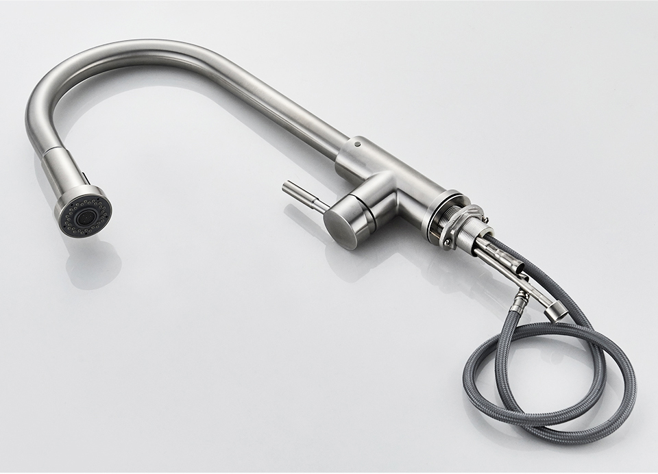 Смеситель кухня боковая ручка на гайке (35) двухрежимный выдвижная лейка Нерж. сталь Accoona A5490-1
