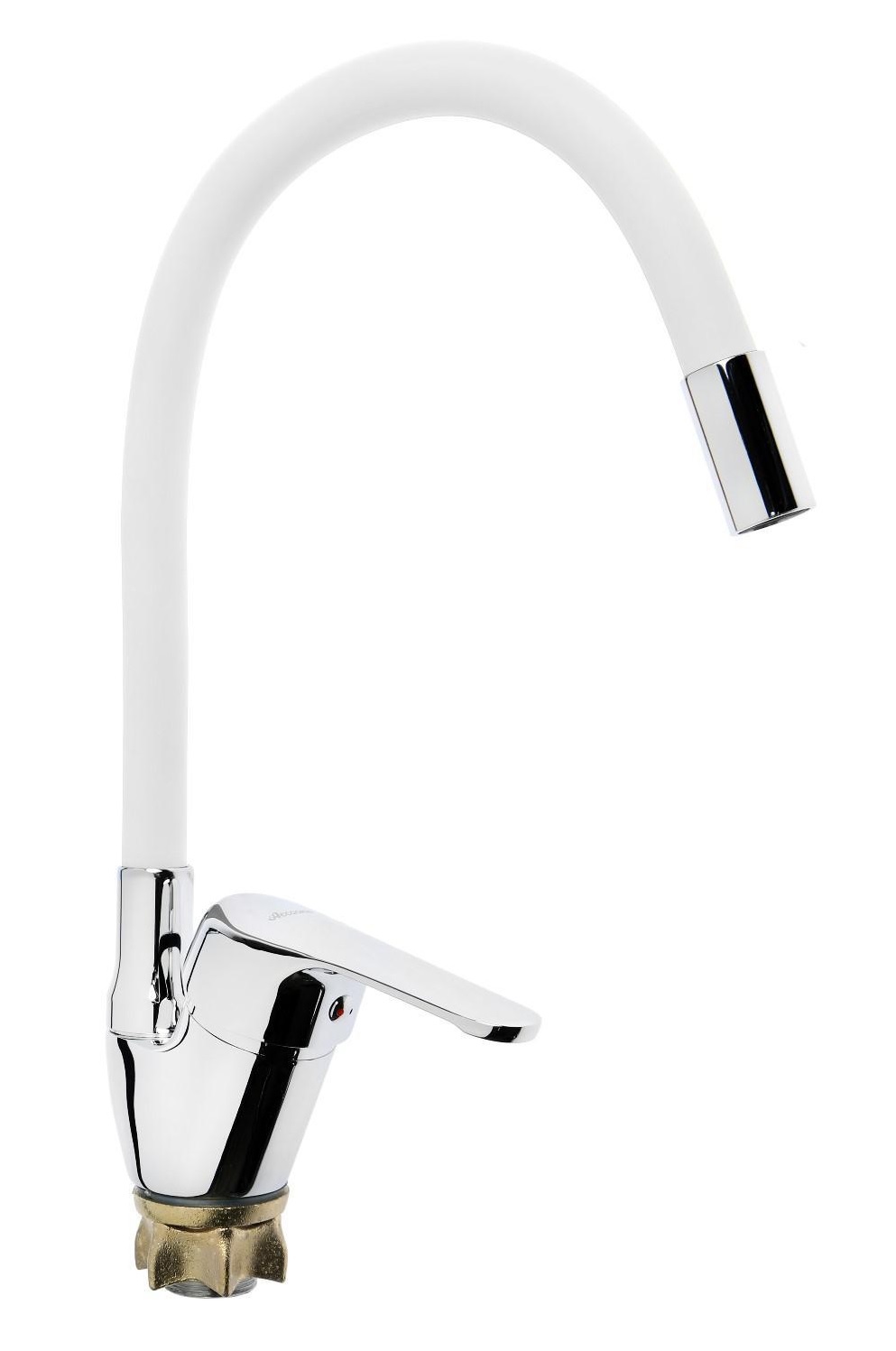 Смеситель кухня с силиконовым изливом, Силумин (Белый+хром) A4844G (АС1)