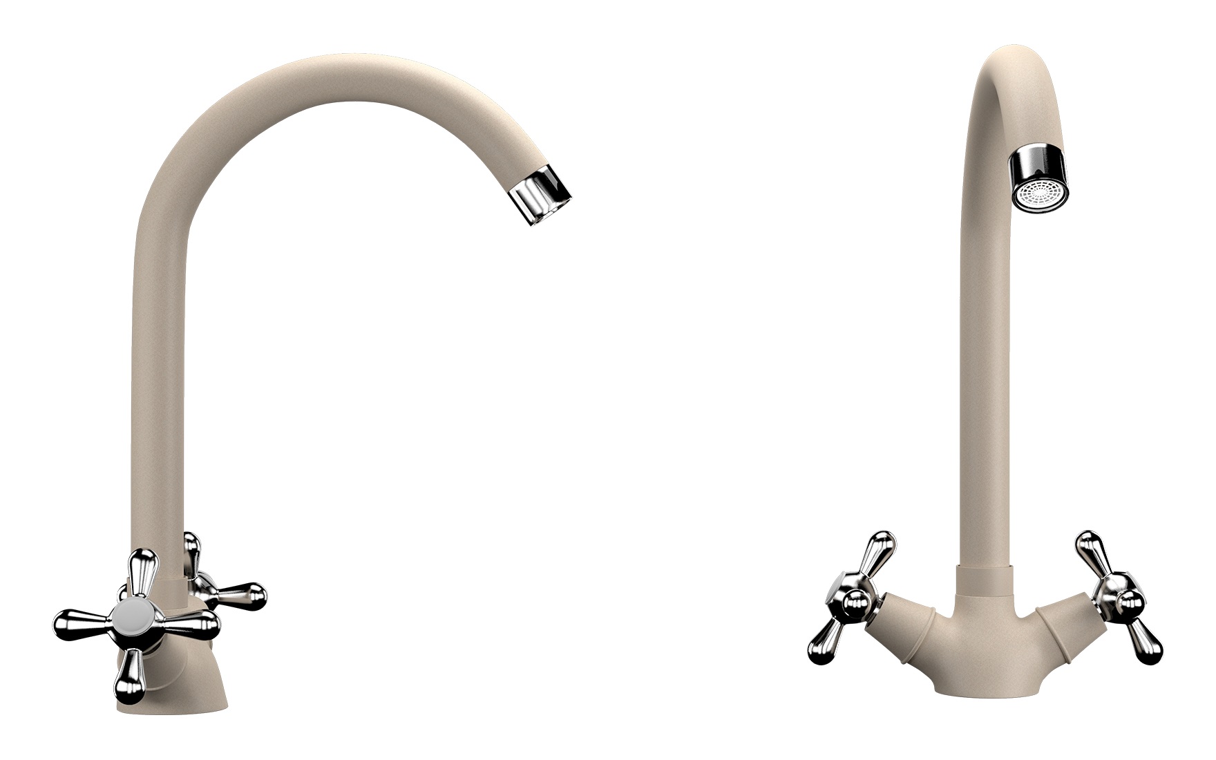 Смеситель 07-328 кухня крест (бежевый) EcoStone